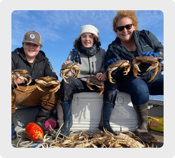 Set out on a delightful crabbing adventure aboard our custom sled, designed for stability and space. Unlike the typical rental boats, our vessel ensures a comfortable and safe crabbing experience. We pride ourselves on using top-quality gear and bait, maximizing your chances of a bountiful harvest. Whether you prefer to sit back and enjoy the ride or get hands-on with the crabbing process, we cater to all preferences. Our goal is to ensure you have a memorable day, learn the intricacies of crabbing, and, of course, enjoy a delicious feast at the end!